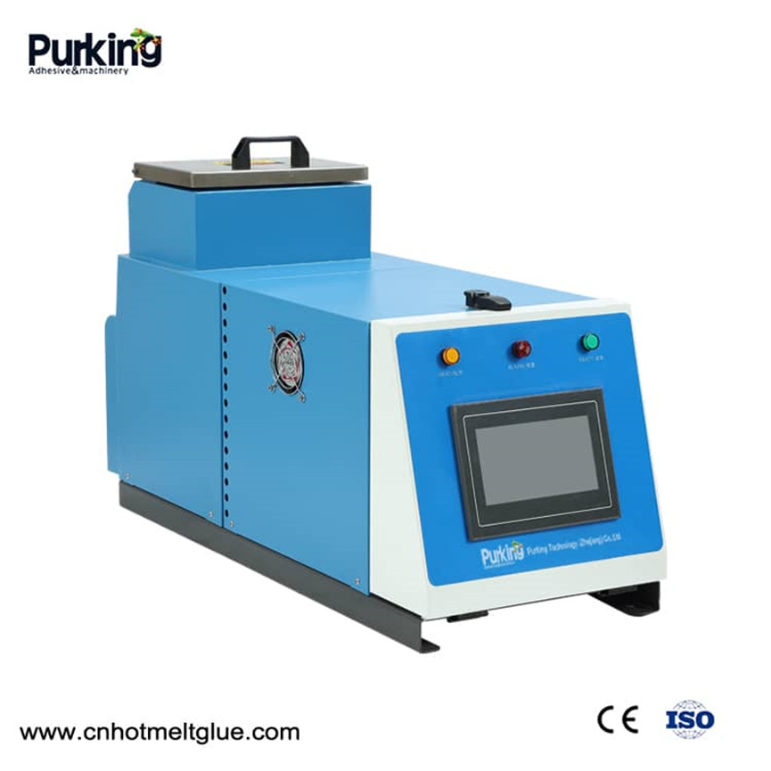 PUR эриткичти тазалоо үчүн, атайын PUR эритүүчү тазалоочу каражатын сатып алышыңыз керек. Тазалоочу каражатты бош ПУР эритүүчү баррелге куюп, андан кийин PUR эриткичке орнотуңуз. Машинаны күйгүзүп, болжол менен 130 градуска чейин ысытып, андан кийин тазалоочу каражатты түтүктүн желим пистолети аркылуу төгүңүз. Ушундайча, машинада ысык эриген желим жана карбиддин калдыгы чыгарылат.