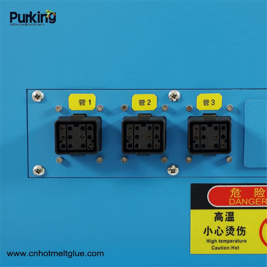 1. Биздин ысык эритүүчү желим эриткич жабдуунун коопсуз иштешин камсыз кылуу үчүн температураны коргоону, төмөнкү температураны коргоону, моторду кечиктирип баштоону, чыгуунун ачык схемасын же башка күнөөнү коргоону ж.б.у.с. Жыштыктын конверсиясынын ылдамдыгын жөнгө салуу менен жабдылган желимдин көлөмүн, тиштүү насостун иштетилүү тактыгын (чет өлкөлүк иштетүү технологиясын колдонуу менен) натыйжалуу көзөмөлдөп, желимдин чыгышынын туруктуулугун натыйжалуу камсыздай алат.
