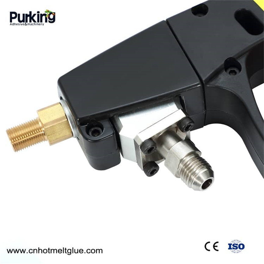 THG Manual спрей тапанчасы так сындыруучу эффектти камсыз кылуу үчүн так модулдун дизайнын жана кол менен которуу дизайнын кабыл алат. Снаряд импорттолгон материалдардан жасалган, 300°С жогорку температурага туруштук бере алат, ал эми мылтыктын корпусу жеңил жана иштөөгө ыңгайлуу жана ийкемдүү. Бул картон таңгактоодо, жарыктандырууда, унаанын интерьеринде, эмеректерди чогултууда, кондиционер/муздаткычты чогултууда, кездемеден жасалган композиттик жана башка продуктуларда кеңири колдонулат.
